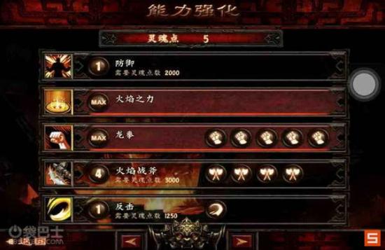 游戏需要使用杀死敌人所获得魂点来解锁和加强角色的能力,而一些技能需要某些条件达到后才能解锁。游戏中每个能力的最高可升级到5级。