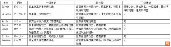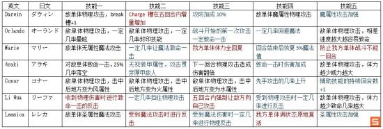 接着是人物觉醒技能的整理(每个人物的二级技能具体习得时间记不清了,望各位补充):