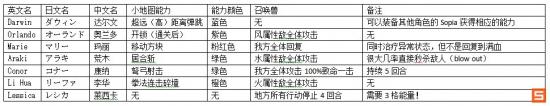 本作可玩人物众多,通关后可达到7名,并且能力各异,各有所长。在这里先奉上七名角色的三语名称对照还有各种能力介绍: