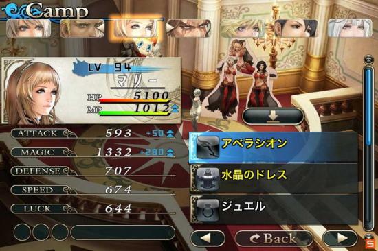 3、女主角玛丽。可怜的妹子,爱上肩负世界的男人,注定要面临悲剧啊……魔法系(攻击+治疗)人物,火属性,随技能变化,物攻很差,魔攻特别高(图中是裸了sopia和首饰的数据),速度也是很快的,这点是魔法系特别是负责治疗的人物必备的素质。因为被动技能能让魔攻致命一击,在魔法输出上是非常可观的。但是缺点非常明显,体力太少…这点非常要命。在第一次通关前,她和主角绝对是最好的组合……