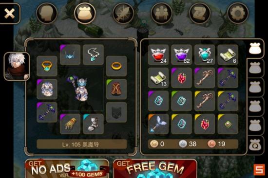 手里是105级破灭之核,之后顺时针依次是:105级恶魔之皮甲、暴击率戒指、105级恶魔之冠、暴击率项链、暴击伤害戒指、暴击暴伤披风、暴伤谢、65级魔之护手