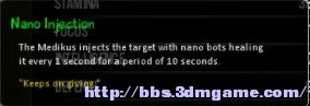 纳米机器人:持续治疗一名队友,每秒一跳治疗(智力可缩短每一跳治疗之间的间隔)。不能叠加。