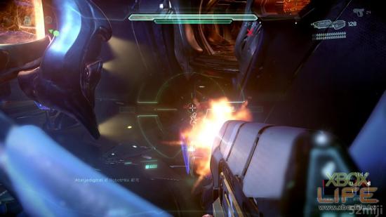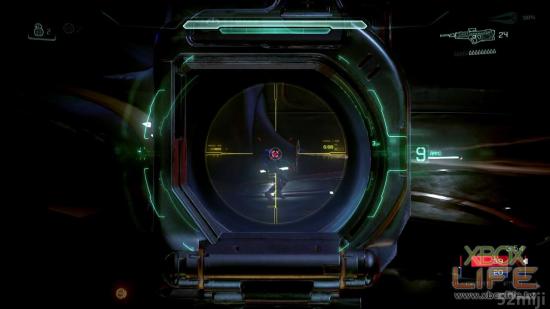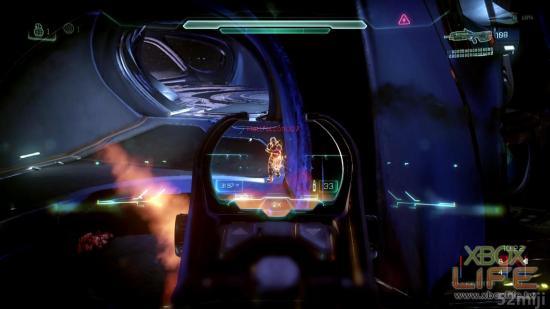 而最大的改变应该就是「智能瞄准系统」,在先前的作品中,例如狙击枪或是步枪等武器,都可以透过与头盔连结的瞄准系统,进行倍率放大的瞄准射击模式。而这次在《光晕5:守护者》则是改成每一把武器都可以瞄准射击(连能量剑都可以...),武器进入智能瞄准模式时,可以有效的延长武器的准确距离。虽说瞄准模式相当好用,但也千万不要因此忽略了传统的腰射开火,因为腰射开火并不会影响武器的准确度,只会下降武器的准确距离。