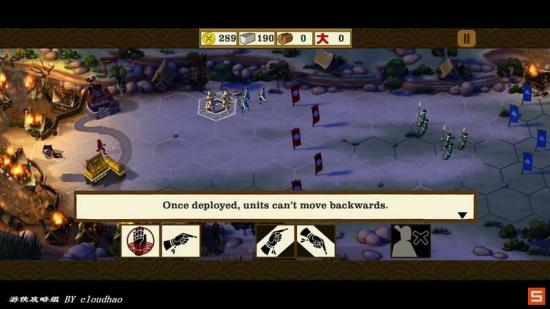 整个战斗界面只有五行,敌人的本阵离我们也不到十个格子,生产出来的兵种只会向前走不能后退,近身只能打前面三个格,远程只能打前方直线。兵种之间当然是互相克制,好的将领知道应该生产什么兵种才可以顺利通关,战斗界面不大敌人在时刻紧逼,快速的决断和合理的命令将是获胜的关键。