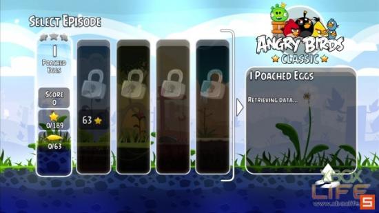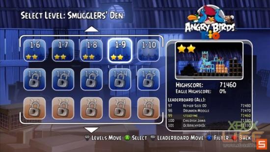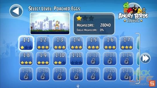 Xbox 360版的介面和app的不太一样,因为《愤怒的小鸟三部曲》不是使用移植的方式,而是全部重新製做出符合高画质的版本!