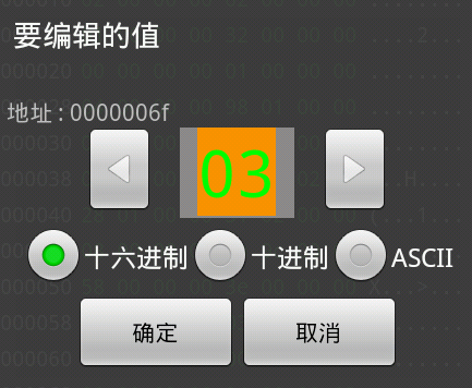 【寻地址方法】:比如要找0000006a,先找00000060、或00000070,然后按左右调节,寻找地址。