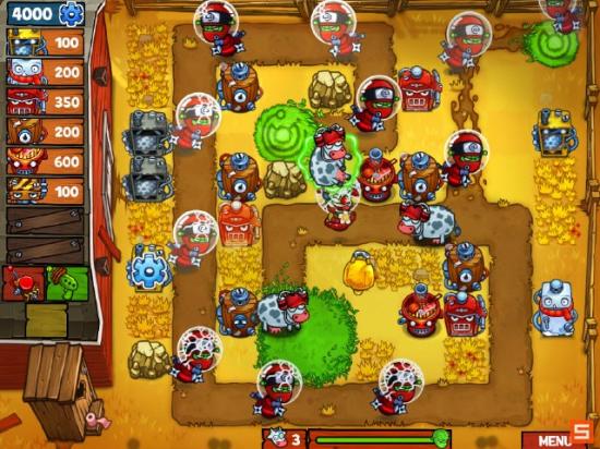 外星人的目标是抓走牧场的奶牛,他们在麦田光圈降落,沿着小路向奶牛前进,再用高科技捕捉奶牛企图将其带回飞碟。玩家要做的就是在小路旁边建造防御设施在外星人达到目标前将其打败。