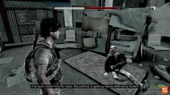 在购物中心,在你放下Mei的楼层(4楼)你会听到他在咳嗽,从电梯处爬下(3楼)你就会见到他。你需要一个inhaler(氧气呼吸器)来帮助他,你会在5楼找到。