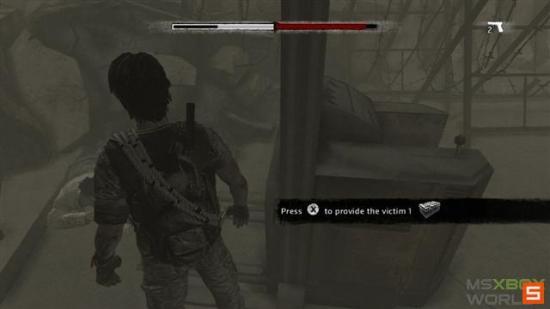 在你把药带给Mei的路上,可以来到一栋楼上(至于哪栋请看图),你可以在楼顶找到一块battery(电池),幸存者就在下楼不远处(你也许在上楼之前就已经看到他了),他被卡住了,用一块电池即可救他。