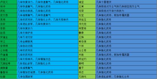 卢俊义 几率恢复体力、几率快速集气、几率强化武将