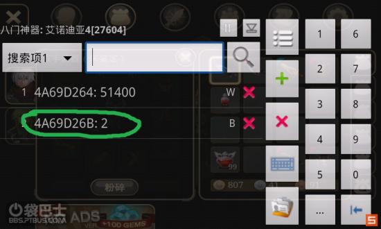 计算好了那3个地址后手动在八门里面添加16位内存地址,把那3个都添加上。