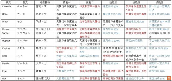 本作的技能系统依旧换汤不换药,前作叫是基因(Gene),本作变成了Sopia。在基本写完剧情攻略之后决定,将“SOPIA”一词翻译为“灵魂结晶”。这里和人物篇分开,主要讲怪物sopia中的技能。废话不多说,先上表格:(红色表示辅助技能,蓝色为被动技能,黑色为伤害技能)