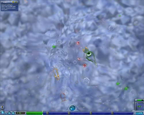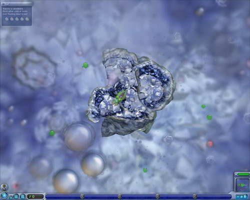 下面开始过场动画,一颗陨石从遥远的太空坠落至你所选择的星球上,然后..从陨石掉入海中的碎片里...生出了你的细胞...游戏进入第一阶段--微生物: