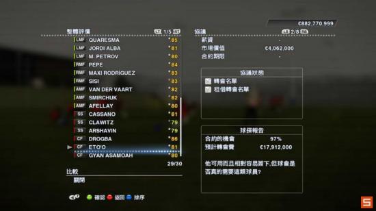 以前是这样的,你加入了喜爱名单,然后球探去调查,一段时间发来更新消息,告诉你对方的成长方式,再过段时间告诉你如何如何,最后是成功可能性。注意,之前的都是告诉你一个大概,比如机会没机会,比如有点可能性,比如成功率非常高。而2013这一代的优点就是,不需要花大量时间调查,也不用加入最爱球员名单,直接在搜索区域就能看成功率,按一下R2,然后在页面里就告诉你了。一般不怎么可能的是1%-2%,然后又40多%,70%多,90%多。非常方便。