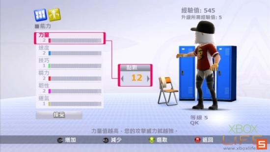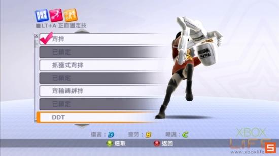 游戏的耐玩度也不低,除了能透过升级获得技能点数,并用这些点数来提升力量、速度、技巧、精力、韧性、运气六大能力,以发展出更具个人风格的摔角手。当然,攻击招式也是构成摔角游戏最重要的一环,玩家可以自订每个按键所施展出来的攻击技,而每个攻击技所造成的伤害自然也不同,因此在搭配攻击技的部份自由度算是相当高的(游戏售价:800点微软点数)。