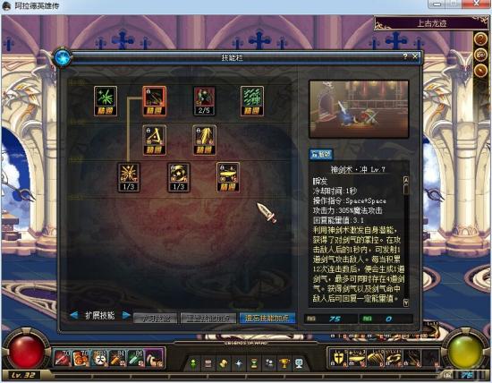 然后就是神剑的控场神技月旋花闪,这个技能神乎其神,能让25级的神剑有个极大的蜕变,我推荐让影子放出这个技能(可以先用十字斩、上挑、连环斩),这样就能给本体创造出好几秒的自由输出时间,好用不好用,用过就知道。