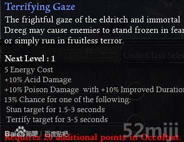 3 +10%硫酸伤害 +10%毒的伤害提高10%持续 有13%的几率为下列之一 存根目标为1.5-3秒恐吓目标3-5