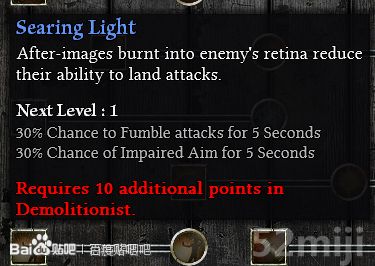 2 灼热的光 30%的几率摸索攻击,持续5秒 30%的几率受损的宗旨,持续5秒