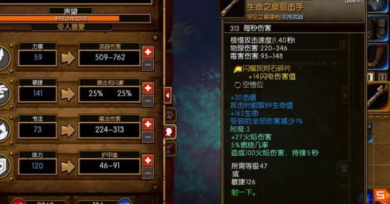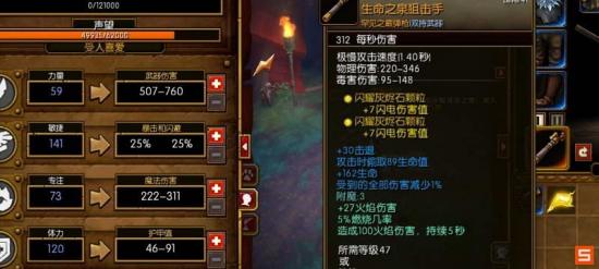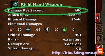 PS:看不懂不会算不要紧,起码学会看就行了。武器的基础DPS基本上没有什么价值,要比较两把武器对你实际DPS的影响的时候,直接按J打开全属性面板看左/右手下的综合DPS值,直接按结果比较即可。