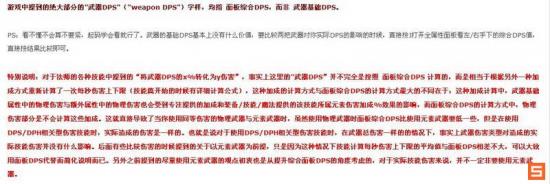 游戏中提到的绝大部分的"武器DPS"("weapon DPS")字样,均指 面板综合DPS,而非 武器基础DPS。