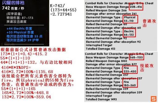 这句话是不是还是在说元素转化问题,伤害将其他类型都转化为对应技能的元素,当然3DM没有提到每个转化后伤害的分别取整加和,那么实际是不是呢,呵呵,能找出我观点的错误么。3DM上只是对伤害的一个总结,我用伤害实际计算的方式,得出的结论,武器DPS的重要性有问题么?