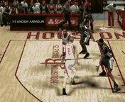 2.首先假装往左翼走,然后点运球手反方向的键,球拉回来,记住!略作停顿,不是那种停那里不动的,就是一瞬间的停顿,然后马上加速加反方向见进去,Lay-up!Well done,boy!