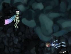 在水面我们会找到这样的一个家伙~~他就是我们的男主角了~~之后我们要把他赶到地图右面的山洞里面~~