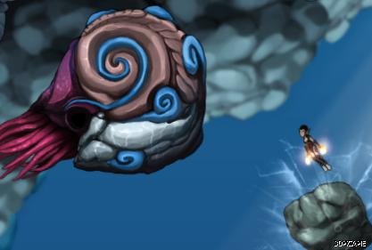迎接BOSS之前最好把门口里面的石头带上~这样可以减少不少伤害~~这BOSS的攻击没有什么特别的地方~~我就不说明了~~只有一边逃跑一边攻击就可以轻松获胜~~BOSS放出的杂兵会被你带来的石头搞定~~