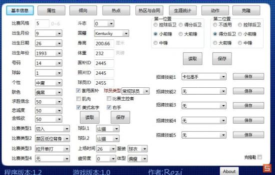 这里得补充一点,还是那MKG做例子。MKG是小前锋,所以可以在打开修改器之前在游戏里把新创建的人物位置给改成小前锋,防守型。因为游戏的时候每个动作不同的位置获得的队友评级是不一样的。