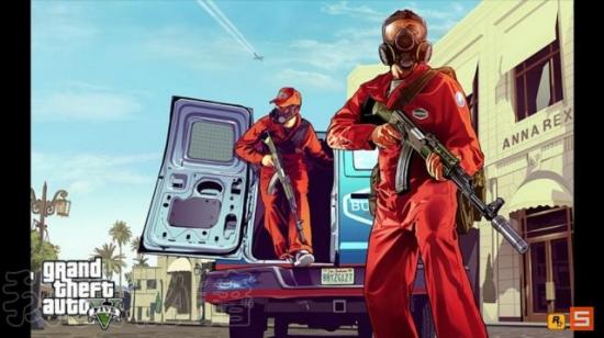 有听到无数支笔管在纸上振笔疾书时所发出的鼓譟声吗?那是数千位被时间追著跑的记者,急著挖出深藏在《侠盗飞车5》插图中秘密所发出的阵阵怒吼,也就是下面那张有两个穿著红色除虫公司制服、手持全自动突击步枪、一看就知道这两位大哥一定是个狠角色的全新插图。