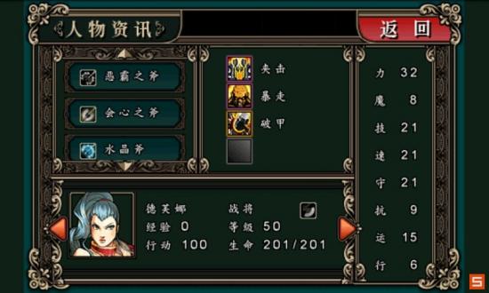 后期加入,女战将。技能一般,破甲唯一亮点。至于暴走。。对于战将,后期半血就是死字贴脸上。。别指望太多,输出不如里奥。防御方面和里奥差不多。