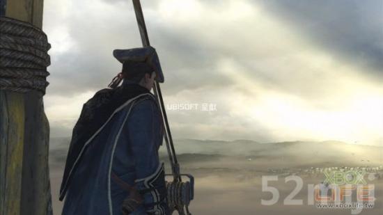 走到上层甲板找船长,他会说准备靠岸,告诉康纳爸自己上瞭望台去看,一路爬上去以后,波士顿港的美丽景像映眼帘,「Assassin’s Creed III」字幕浮现,这时你才知道原来这才是真正的游戏开头XD。