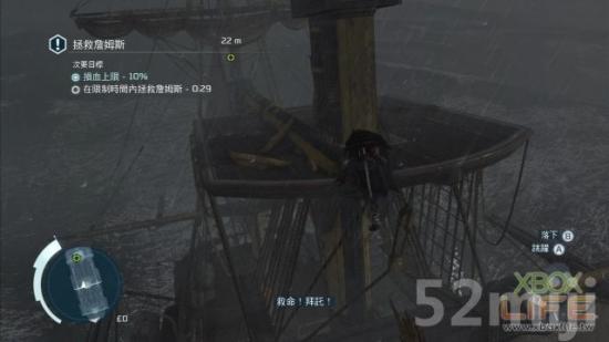 这个次要任务其实很简单,沿著倒下来的主桅一直自由奔跑,跑到底往前跳,就会救到詹姆斯了,不用10秒,所以时间是很充分的。
