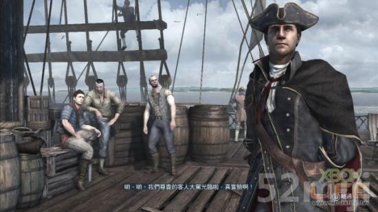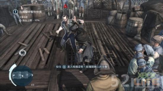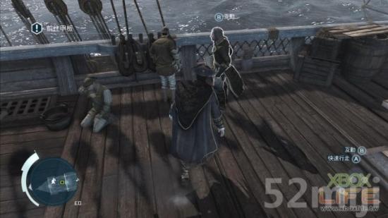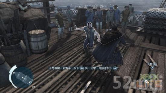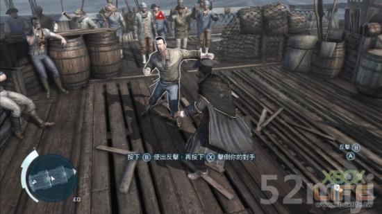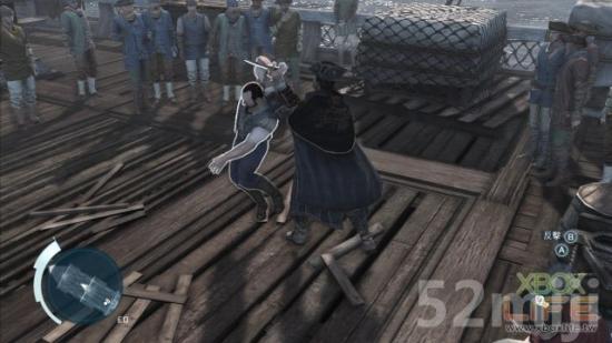 到了中段甲板,听到水手鬼鬼祟祟的谈话后,水手讥讽康纳爸,康纳爸反唇相讥,于是很自然的双方就开始「钉孤枝」,这其实是基本战斗教学。