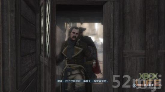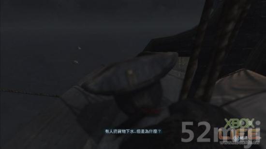 康纳爸正在看那个钥匙,船长跑来叫他快点去调查,总之到处跟著绿色标记,找人聊天就是了,每个人都会叫你去找下一个人,最后詹姆斯会带你到上层甲板,讲完话后到船尾跟掌舵大副聊,聊到一半会发现有人丢货物下水,回船舱货物区,用鹰眼找出一个木桶,发现上头做了记号,显然有问题,看过海盗电影就知道这是在留下船的踪迹啦!