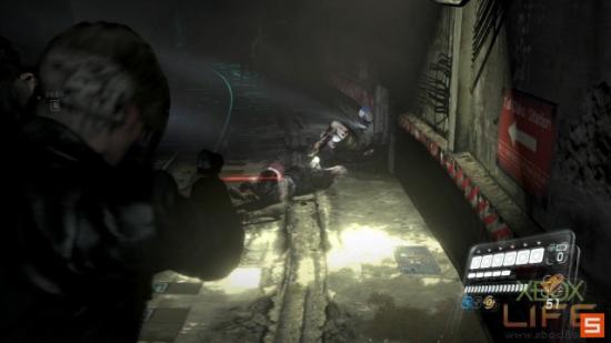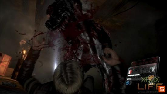 游玩五个小时之后发现,「射击」与「体技」必须併重,完全不像之前在玩试玩版时那样,一路用体技一路海K殭尸到过关,因为使用体技攻击殭尸得要承担受伤的风险,而且大多数的殭尸会将玩家扑倒,此时不能快速左右推动左类比杆挣脱的话,会持续受伤直到濒死状态;进入濒死状态时,画面会失焦并只有很短的时间能让伙伴将你救起。在这里笔者也分享一下战斗时的心得,建议射击殭尸的头部让牠失去重心后,再按住手把A键衝过去执行体技,如果射击技能没有很好的玩家,也别贸然看到殭尸就衝过去用体技K,最好还是用枪射个二到三枪,看到殭尸向后退一步或背对玩家时再衝过去。其实我觉得游戏中最容易让主角受伤的是趴在地上的殭尸,牠们飞扑的时机比较不好抓之外,有些装死的殭尸还不能预先补枪让牠们「动」起来,往往都是经过牠们身旁时,冷不防就被抓起来咬个几下了。