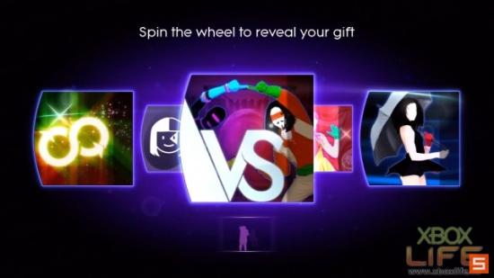 经验值累计到升级之后呢,就会有礼物转盘!用手挥一下就会转动,然后看你转到些什么礼物,这些礼物里有新歌、新服装、新模式、新功能,还有新舞步哦!