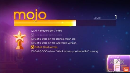 当然除了新增一些多人的元素之外,在游戏中获得的分数转变成了经验值来累计等级,这次还出现了任务模式,每一首歌都会有六个小任务,比方说拿到五颗星或是四个人一起游戏并且拿到三颗星,达成这些小任务后又会再增加一些经验值!