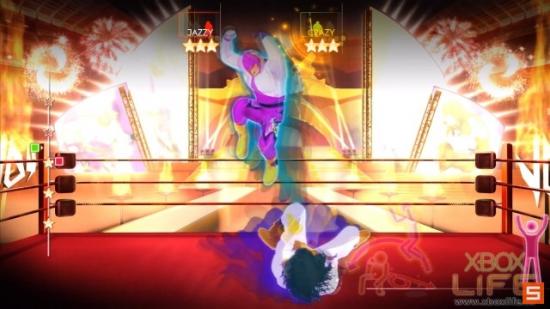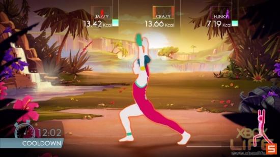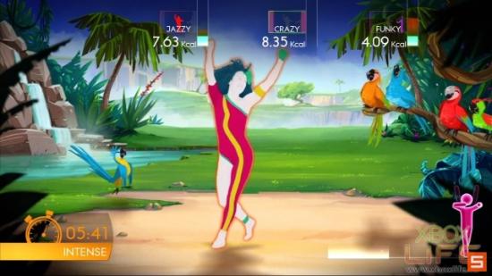 说到Kinect游戏当然少不了燃烧热量的模式啦!所以《舞力全开4》当然也要跟著潮流来流汗塑身一下,而且小编发现这模式好完整啊!一开始先在选单中选择要运动强度,正式进入之后会先有暖身舞步,接著就进入正式的运动,结束后还会有缓和舞步帮助你纾缓刚刚运动的肌肉,伸展伸展拉拉筋~整个就是非常棒欸!完全可以取代郑多燕了~哈哈!