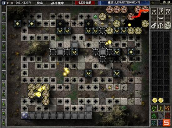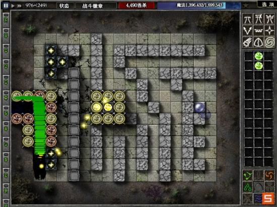本来还不打算用暴击宝石的,但是有一次炸出了一波无敌怪,怎么打都不减血,最后还是用神殿和毒宝石弄死的,400多只无敌怪啊,看看图上的陷阱就知道了,其实如果不炸很多怪的话,暴击宝石都不需要用,因为用暴击宝石秒杀怪物的话,只能吸一次魔,而要打一段时间才死的话就能持续吸魔了。