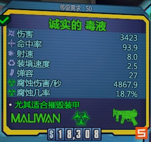 武器属性为腐蚀、武器基础伤害为3423、AMP伤害为51474