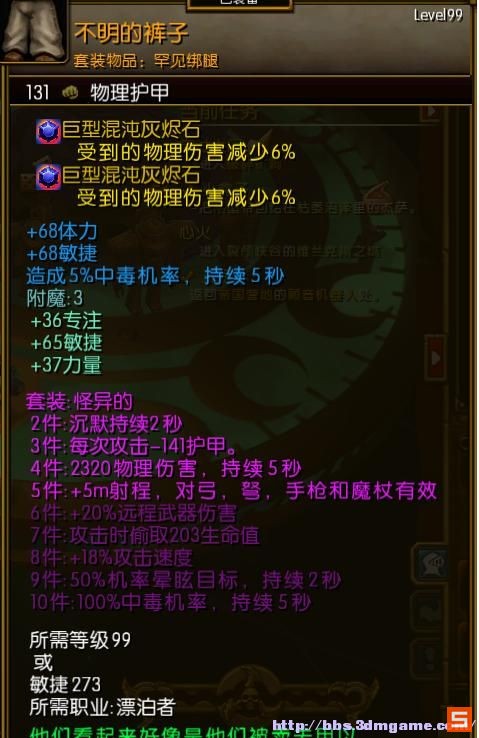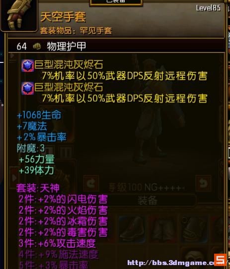 减伤不推存使用3%减伤,5%减伤这东西我压根没见过,游戏出不出都不知道,更别想弄一身了,推存是用6%混沌,这种石头很好弄,打也打的出来,合也合的出来,怪物魔法攻击虽然也站一定比例但大部分都是远程,而且很多都可以反弹,所以强烈推存堆6%减物理伤石头