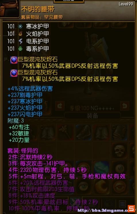 远程反伤堆装备递减,60%以上上升幅度很小,所以建议超过60%就不要堆了,用斗篷技能的可以不堆这个