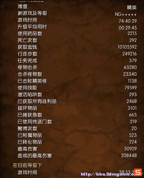 最后声明一点,这全部数据都是按照无修改标准来的,我的装备大号就给了两件,其他全是自己弄的,用修改器只是洗了次技能,这号钱都没改过,附魔全是自己弄的,那些觉得2000来点属性逆天的,嫩就别玩四周目以上,切记~~~
