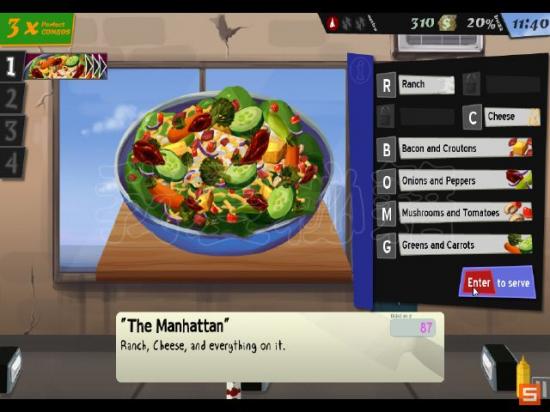 游戏的玩法比较特别,使用鼠标和键盘进行操控,客人会点不同的菜,你需要点击菜单要求的单词进行调配才能满足客人的需求,虽然玩起来感觉有一点复杂,不过确实是蛮特别的。