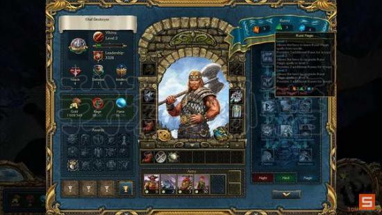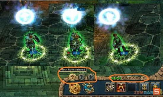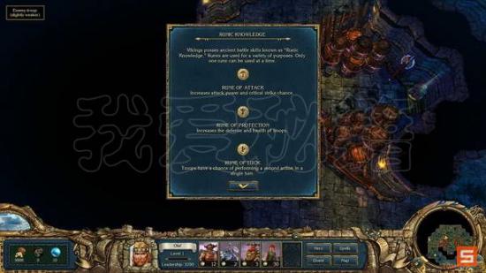 而符文技能则是在战场上直接使用的,只针对我方的加攻加防等实质性的一个特技,符文独立于怒气和魔法存在,轮到兵种回合可以使用,用光战后恢复,这个特技似乎是针对维京人设计的(废话),每个兵种都有数量各异的符文值,影响着符文的使用和效力。