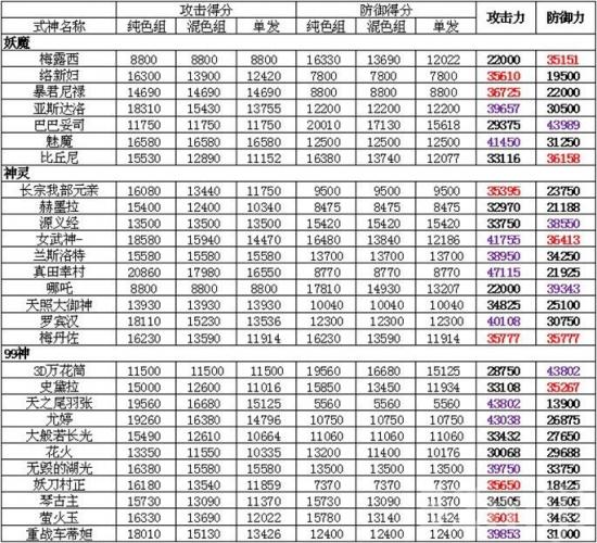 6、因为妖组普遍白字攻防乏力,在计算的过程中,需要对妖组群加攻防技能收益进行调整补正,其纯色组攻防收益取55000攻击总值,混色组攻防收益取25000攻击总值。