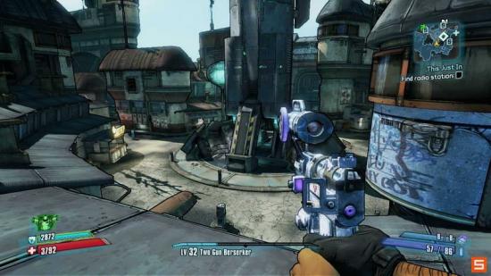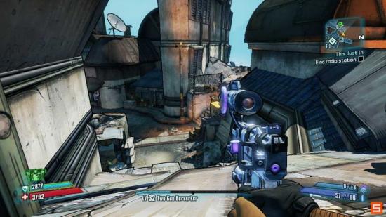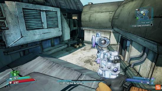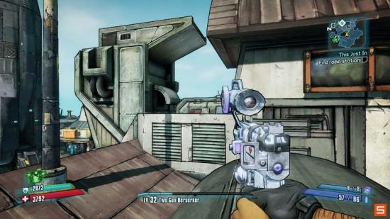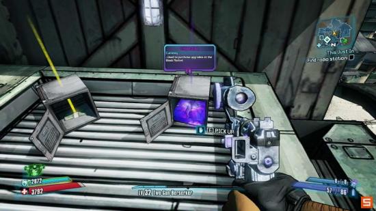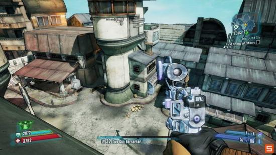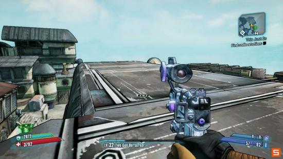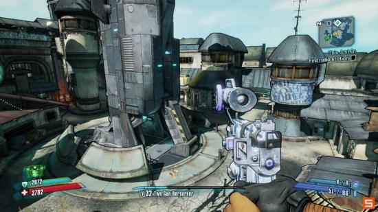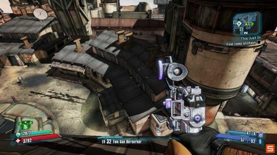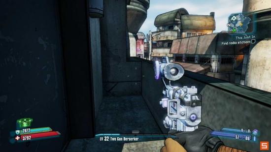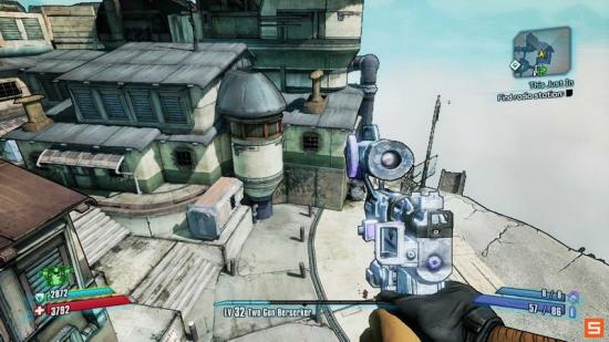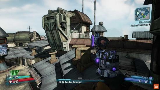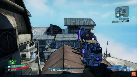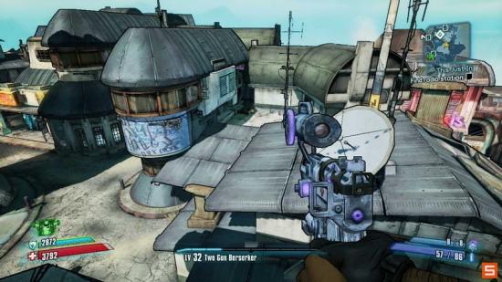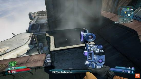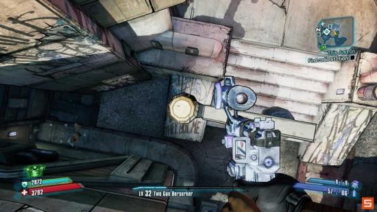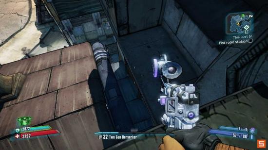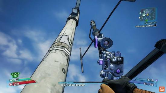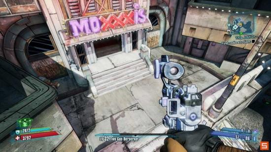 沿着阳台一直向前可以跳到Moxxi莫西前面的电线杆上