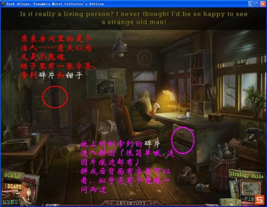 半影的游戏开头,一个孩子下车进了一个奇怪的屋子,里面有个很变态的……(一天到晚傻笑的)老头子,就这么把loli拐走了……于是主角要开始寻找路途,这游戏里的骷髅和鬼影还真不少,不过没有什么特别恐怖的地方。特高兴的是,整个游戏没有单词寻物~!对单词头痛而且不介意黑暗风格的筒子们太适合玩这个游戏了。~~
