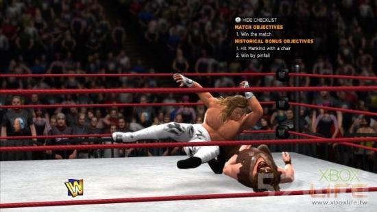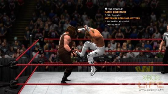 一开始的第一关就是一打败 Mankind 为过关条件,其中拿铁椅砸他为历史重点。